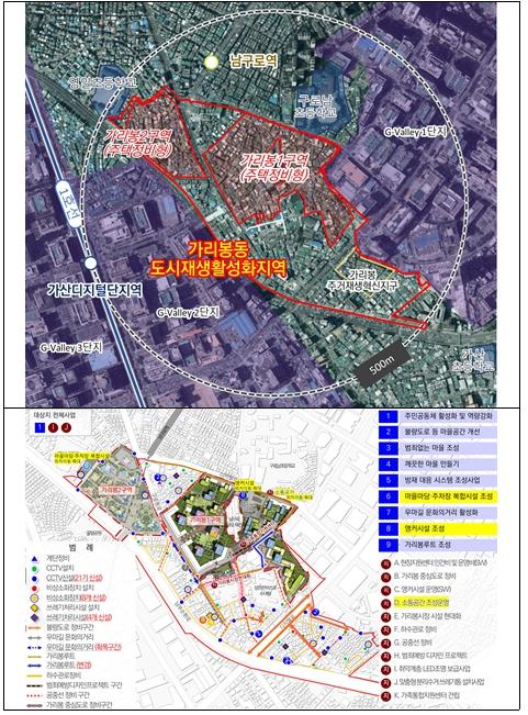 가리봉동 도시재생활성화사업은 2015년 국토교통부 도시재생(뉴딜) 국비 지원 지역으로 선정된 이후 생활SOC 확충과 주거환경 개선을 추진해 온 지역이다.