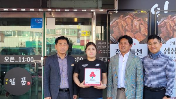 [한국제일신문, 김성옥기자] 충북 영동군 영동읍 지역사회보장협의체(민간위원장 김민수)는 17일 영동읍에 위치한 일품(대표 강병규)을 착한가게로 지정하고 현판을 전달 했다.