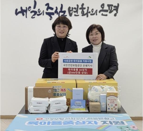 이날 국민건강보험공단 은평지사는 유아용 세제, 이유식 용기, 타월, 바디로션 등 금 10만 원 상당의 육아용품 상자 총 30개를 전달했다. 지원 물품은 관내 생활이 어려운 영유아 출산·보육 가구에 전달될 예정이다.