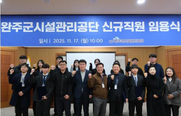 [한국제일신문, 김성관기자] 완주군시설관리공단이 17일, 신규직원 임용식을 갖고 2026년 위탁 사업대비를 위한 업무인수인계 절차에 본격 돌입했다.