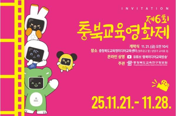 [한국제일신문, 김성옥기자] 충청북도교육청 직속기관 교육연구정보원 미디어교육센터는 오는 21일부터 29일까지 제6회 충북교육영화제를 개최한다고 밝혔다.