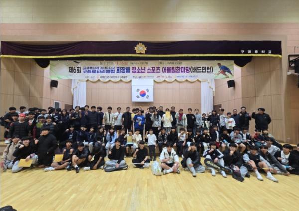 [한국제일신문, 윤진성기자] 국제로타리 3610지구 구례 로타리클럽(회장 길로 한창철)이 주최한 '제6회 구례 로타리클럽 회장배 청소년 스포츠 어울림 한마당(배드민턴)' 대회가 지난 16일, 구례중학교 지리관 체육관에서 성황리에 마무리됐습니다.