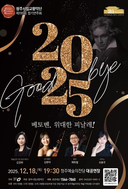 [한국제일신문, 김성옥기자] 청주시립교향악단은 오는 12월 18일 오후 7시 30분 청주예술의전당 대공연장에서 제199회 정기연주회 ‘Good bye 2025 – 베토벤, 위대한 피날레!’ 공연을 개최한다.