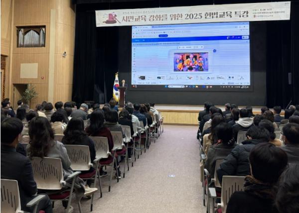 전북교육청은 18일 오후 2시 전주 치명자산성지 평화의전당에서 ‘2025년 교원 대상 헌법교육 특강’을 개최했다고 밝혔다.