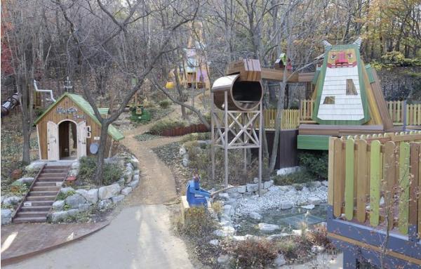 아이들이 초안산 숲속 장소를 탐험하며 모험심을 기를 수 있는 다양한 놀이구조물도 배치돼 있다. 또 자연을 활용한 놀이 공간도 마련돼 있다.