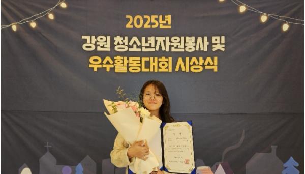 [한국제일신문, 김성옥기자] 영월군청소년문화의집봉사동아리 소속 이가윤(무릉초6)이 지난 14일 ‘2025년 강원 청소년자원봉사 및 우수활동대회’ 시상식에서 한국청소년활동진흥원 이사장상을 받았다.