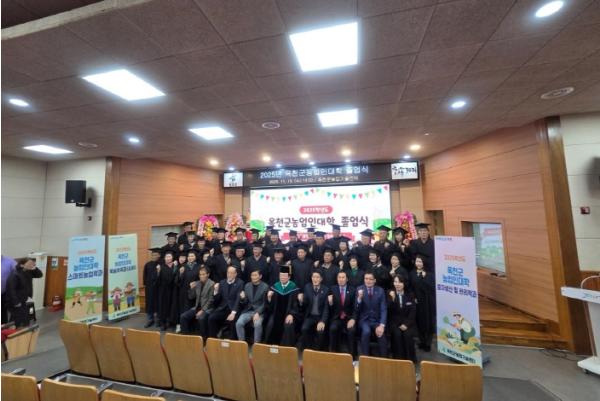 [한국제일신문, 김성옥기자] 옥천군은 19일 농업기술센터 농업인교육관에서 옥천군 농업의 미래를 이끌어갈 농업전문인력을 양성하는 2025학년도 옥천군농업인대학 졸업식을 성황리에 개최하고, 총 43명의 전문 농업인을 배출했다.