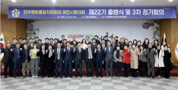 [한국제일신문, 김성옥기자] 민주평화통일자문회의 제천시협의회는 11월 19일 제천시청 청풍호실에서 김창규 제천시장, 자문위원 등 58명이 참석한 가운데 ‘제22기 출범식 및 2025년 3차 정기회의’을 개최했다.