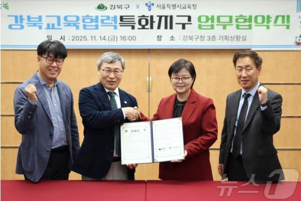 [한국제일신문, 김성옥기자] 서울 강북구는 지난 11월 14일 강북구청 기획상황실에서 서울특별시교육청(교육감 정근식)과 ‘강북교육협력특화지구’ 업무협약을 체결했다.