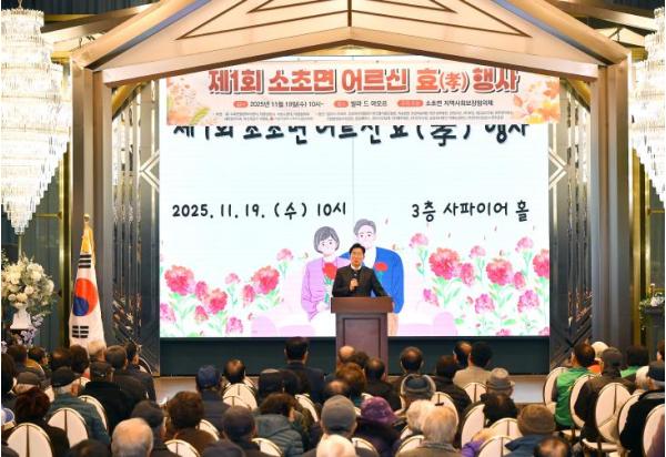 [한국제일신문, 김성광기자] 원주시 소초면지역사회보장협의체는 지난 19일 빌라드 아모르에서 ‘제1회 소초면 어르신 효(孝) 행사’를 성황리에 개최했다.