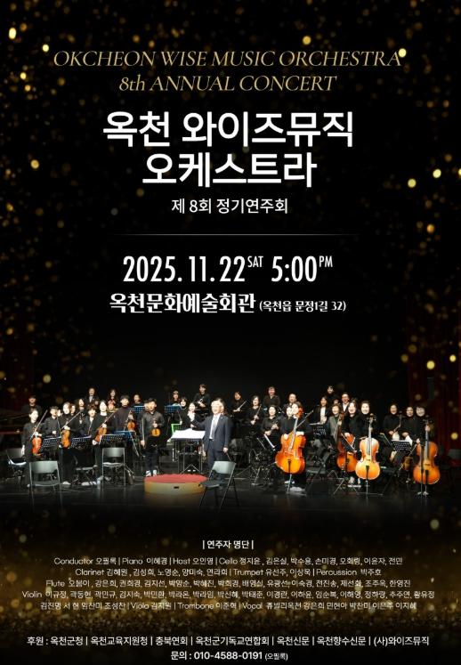 이와 더불어 와이즈뮤직 오케스트라는 오는 11월 22일 오후 5시, 옥천문화예술회관에서 제8회 옥천와이즈뮤직오케스트라 정기연주회를 개최한다.