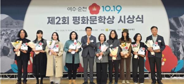이길용 전남도 여순사건지원단장은 “아픔의 역사를 기억하고, 문학작품으로 승화해 메시지를 전해준 수상자들께 감사와 축하 인사를 전한다”며 “앞으로도 여수·순천 10·19 평화문학상이 평화와 인권을 이야기하는 대한민국 대표 문학상으로 자리매김토록 지속해서 발전시키겠다”고 말했다.