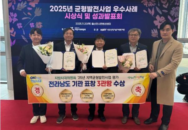[한국제일신문, 윤진성기자] 전라남도는 대통령직속 지방시대위원회에서 주최하는 2025년 균형발전사업 우수사례 시상식에서 전국에서 유일하게 3개 부문을 모두 수상했다고 밝혔다.