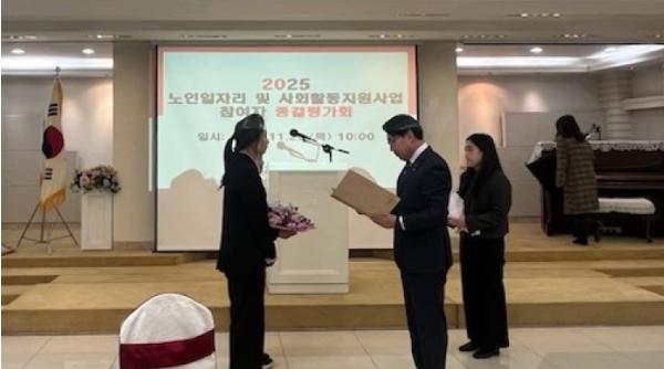 이번 평가회에서는 2025년도 사업 추진 성과를 종합적으로 점검하고, 2026년도 사업운영 방향과 계획을 안내했다. 또한 노인일자리 사업 운영에 기여한 우수 담당자와 참여 어르신에게 표창을 수여하여 그간의 노고를 격려했다.