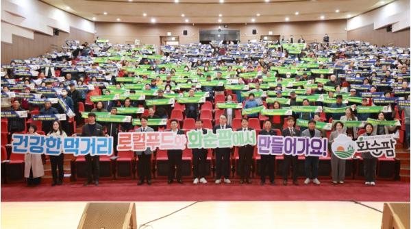 교육을 시작하기 전 화순군수와 도의원, 화순군의회 의원, 농협 관계자 등 주요 내빈과 교육 참여 농가가 함께 모여 “건강한 먹거리, 로컬푸드와 화순팜에서 만들어가요!” 구호를 제창, 참여 농가와 지역 농협의 상생 발전을 도모했다.