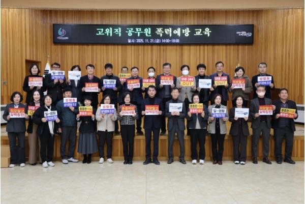 이번 교육은 ‘고위직 대상 별도 4대 폭력예방 교육 의무화’에 따라 양성평등 의식을 제고하고 건전한 공직문화를 조성하기 위해 마련된 것으로, 한국서비스교육원 김춘애 원장을 초빙해 △관리자의 책임과 의무 △성인지 기반의 폭력 예방 인식 강화 △성평등한 조직문화 조성 전략 등을 중심으로 4시간 동안 진행됐다.