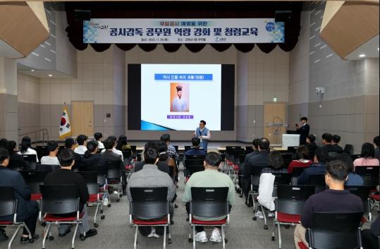 이번 교육에서는 ▲기술감사 주요 지적 사례 공유 ▲공사감독 공무원의 권한 및 역할 이해 ▲공사품질 향상을 위한 현장관리 기법 등 공사 추진 과정 전반에 필요한 핵심 내용을 다뤘다.