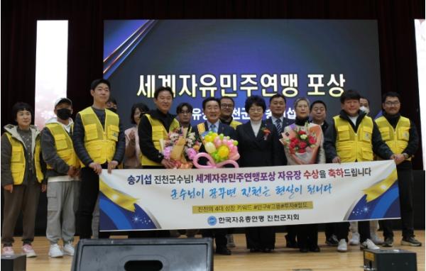 [한국제일신문, 김성옥기자] 송기섭 진천군수가 22일 한국자유총연맹 창립 71주년, 충북지부 창립 61주년 기념대회에서 세계자유민주연맹(WLFD, World League for Freedom and Democracy)이 수여하는 자유장을 수상했다.