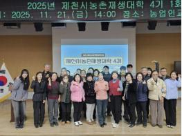 [한국제일신문, 김성옥기자] 제천시농촌협약지원센터는 지난 21일 제천시 농촌재생대학 4기 개강식을 개최하며 농촌공간재생 및 공동체조직을 중심으로 한 2025년 마지막 교육과정의 시작을 알렸다.