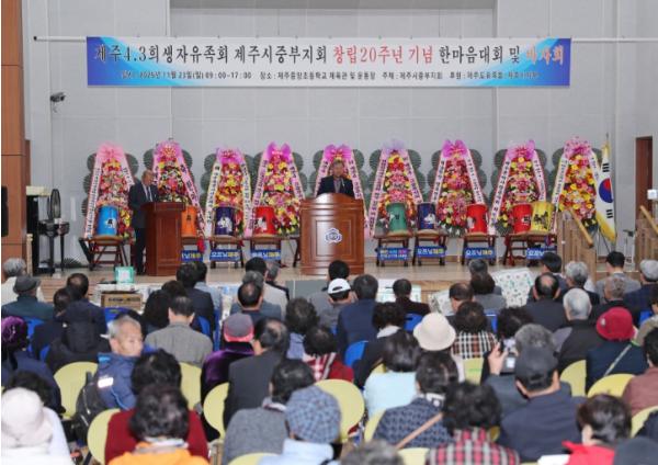 [한국제일신문, 김성옥기자] 김완근 제주시장은 23일 제주중앙초등학교에서 열린 제주4·3희생자유족회 중부지회 창립20주년 기념 한마음대회에 참석했다.