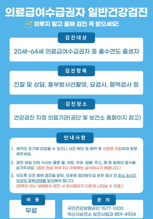 익산시 '의료급여수급권자 건강검진 잊지마세요'