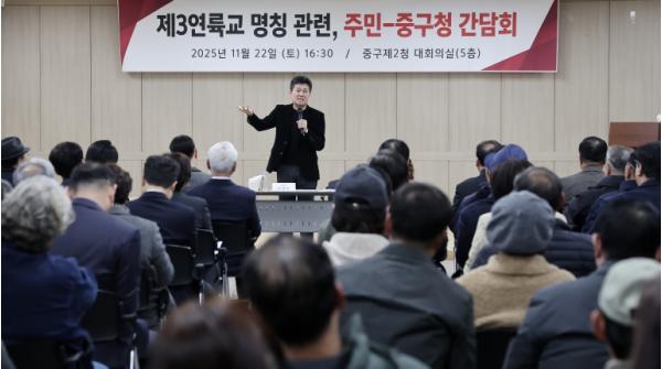 김정헌 중구청장은 지난 22일 오후 중구 제2청 대회의실에서 영종·용유 지역 주민 등 100여 명이 함께한 가운데 열린 ‘제3연륙교 명칭 관련 주민-중구청 간담회’에서 이 같은 뜻을 밝혔다.