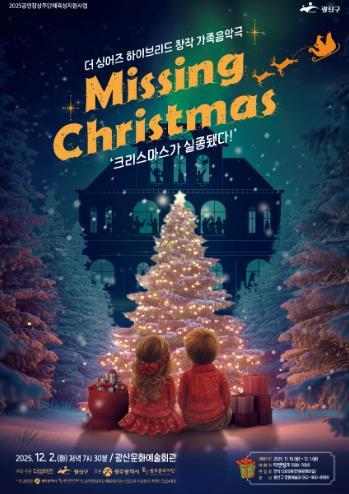 [한국제일신문, 윤진성기자] 광주 광산구가 12월 2일 광산문화예술회관에서 천원문화마실 제8편 창작가족음악극 ‘Missing Christmas-크리스마스가 실종됐다!’를 선보인다.