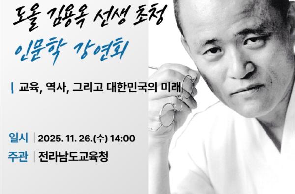 강연 후에는 전라남도교육청이 추진 중인 ‘세계를 품고, 지역을 살리는 글로컬 전남교육’을 주제로 전남교육이 나아가야 할 방향 중 ▲생태·인문·역사 융합교육 ▲AI·디지털 기반 미래교실 구축 ▲인구감소 시대의 지역 정착 지원 등 전남교육 주요 과제에 대한 도올 선생의 의견을 듣고, 청중과의 질의응답 시간도 마련된다.