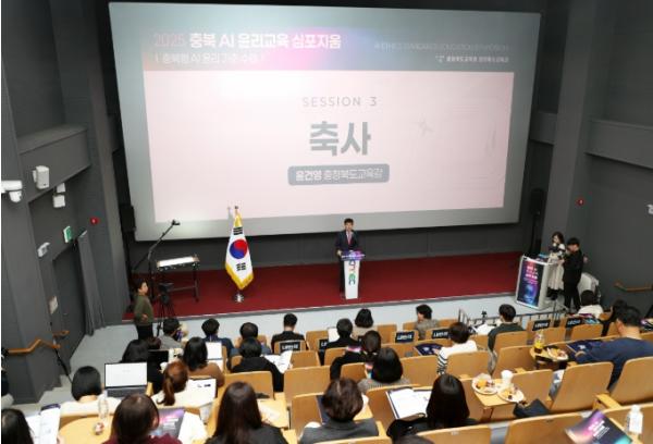 [한국제일신문, 김성옥기자] 충청북도교육청은 24일, 미디어교육센터 다목적상영관에서 2025. 충북 AI 윤리교육 심포지엄을 개최하며, 교육현장에 적용할 충북형 AI 윤리 기준에 관해 설명하고 교육공동체의 의견을 수렴하는 시간을 가졌다.