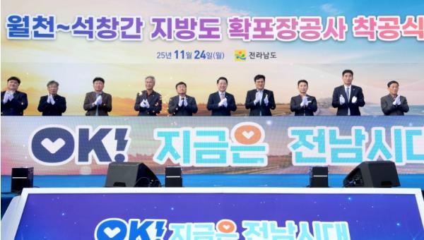 [한국제일신문, 윤진성기자] 전라남도는 24일 함평 손불면 일원에서 ‘월천~석창 간 지방도 확포장공사’ 착공식을 열고 본격적으로 함평만 해안관광 일주도로 건설에 착수했다.