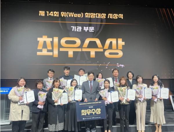 [한국제일신문, 김성옥기자] 충청북도청주교육지원청 위(Wee)센터가 11월 21일 열린 ‘제14회 위(Wee) 희망대상’에서 기관 부문 최우수상을 수상했다.