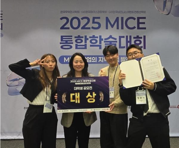 [한국제일신문, 윤진성기자] 전남대학교 문화관광경영학과 정환석, 박정현, 김동언 학생들이 ‘2025년 MICE 통합학술대회 대학생 공모전’에서 대상을 수상하며 지역 MICE 산업의 미래를 이끌 청년 인재로 주목받고 있다.