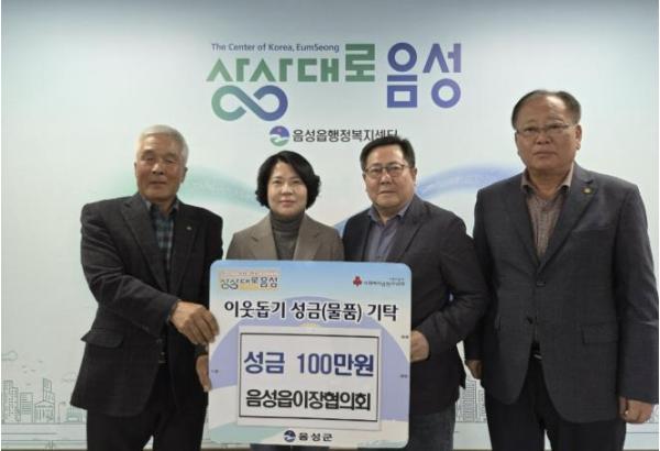 [한국제일신문, 김성옥기자] 음성읍이장협의회는 지난 24일 지역사회 복지 증진과 이웃사랑 실천을 위해 음성읍지역사회보장협의체에 성금 100만원을 기탁했다.