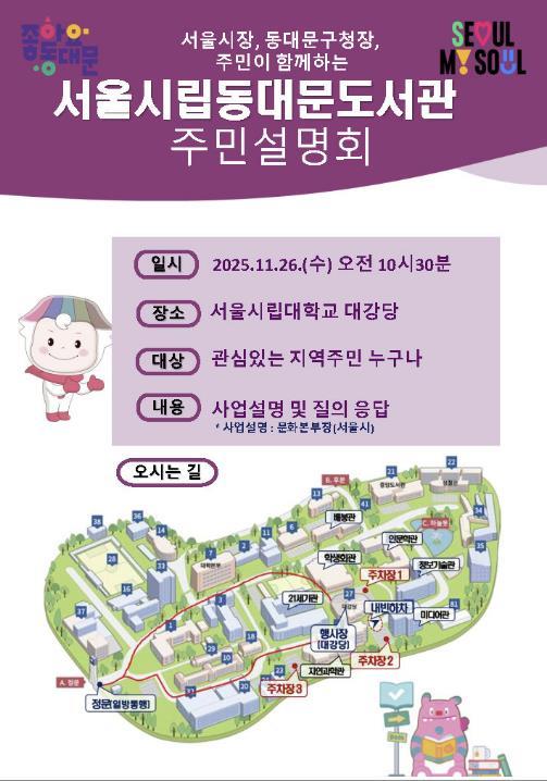 설명회는 서울시장·동대문구청장 인사말, 서울시 문화본부장의 건립계획 설명, 주민 질의응답 순으로 진행되며, 지역주민 등 약 400여 명이 참석할 것으로 예상된다.