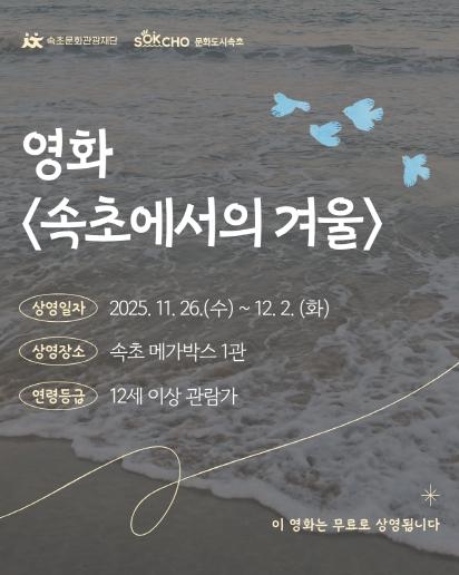 이와 함께 속초에서는 개봉일부터 12월 2일까지 메가박스에서 1일 2회(13:20 / 19:30) 무료로 상영된다.