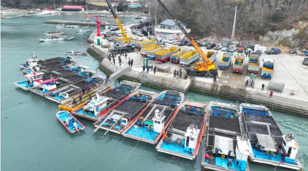 지난 11월 3일 군외면 당인리에서 첫 위판이 이뤄진 가운데 4,949 마대, 약 594톤의 물김이 거래됐다.
