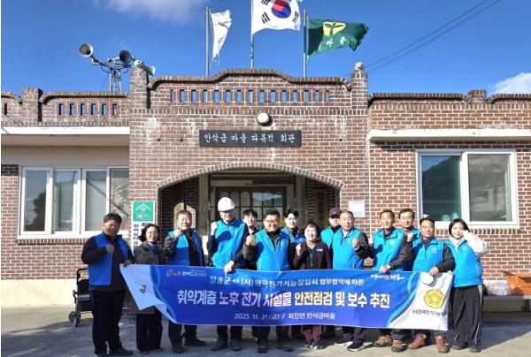 [한국제일신문, 윤진성기자] 장흥군과 (사)한국전기기능장협회(회장 유주식)은 21일 회진면 안삭금마을 찾아 노후 전기시설물 안전점검 및 보수 활동을 실시했다.