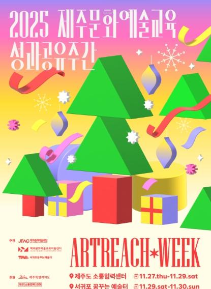 [한국제일신문, 김성옥기자] 제주문화예술재단은 오는 27일부터 30일까지 4일간 제주도 소통협력센터(제주시 관덕로 44)와 서귀포 꿈꾸는 예술터(서귀포시 천제연로 164)에서 2025년 제주문화예술교육 성과를 도민에게 공유하는 문화예술교육 축제인 '아트리치위크'를 운영한다.