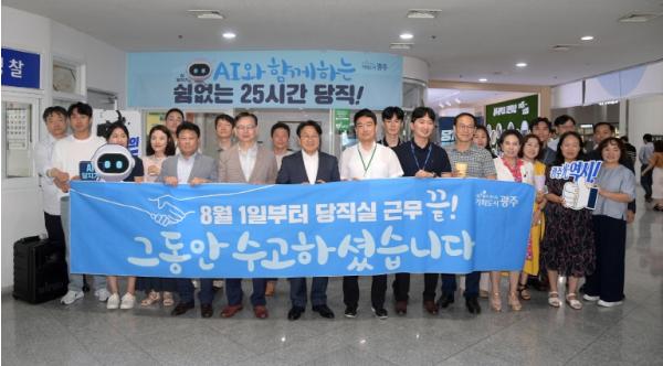 강기정 시장은 “정부의 당직제 폐지 방침은 인공지능(AI) 시대에 광주가 선도적으로 이끈 행정 혁신의 파급력을 보여주는 사례”라며 “불요불급한 업무를 개선해 공직자의 본연 역할인 시민 행복과 광주의 더 큰 변화를 위한 혁신을 지속해 나가겠다”고 말했다.