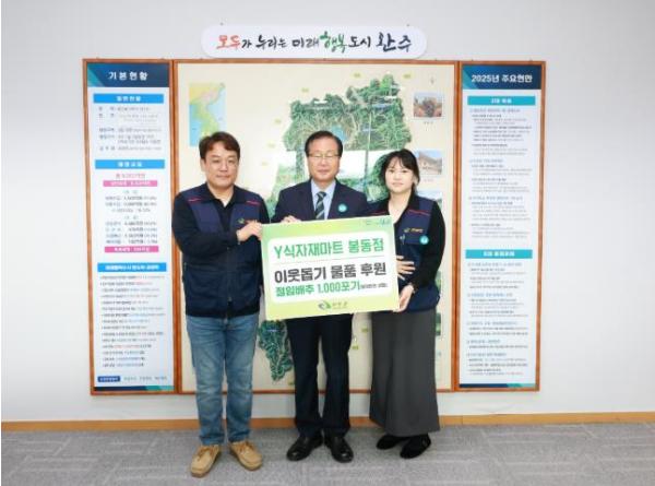 Y-식자재 마트 봉동점은 지난 2023년 배추와 양념재료 200만 원 상당, 2024년 배추, 유과, 아동간식, 생수 등 1,100만 원 상당을 후원하는 등 올해까지 3년째 지속적인 이웃돕기를 실천하고 있다.