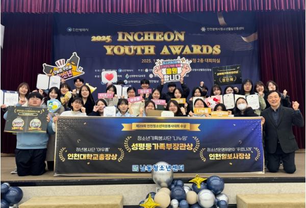 [한국제일신문, 김성옥기자] 인천시 남동구 남동청소년센터는 소속 청소년 활동 참여‧자치기구가 인천시청에서 열린 ‘2025년 우수 청소년 활동 시상식(인천 유스 어워즈)’에서 성평등가족부 장관상을 포함해 총 8개 부문에서 수상했다고 26일 밝혔다.