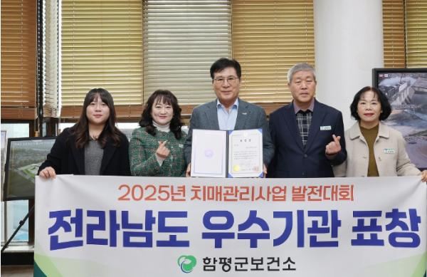 [한국제일신문, 윤진성기자] 전남 함평군 보건소 치매안심센터가 2025년 전라남도 치매 관리 발전대회 우수기관 표창을 받으며 치매 예방·관리 분야에서의 우수한 행정 역량을 전국에 입증했다.