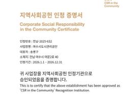 ‘지역사회공헌 인정제’는 비영리단체 및 지역사회 유관기관과 협력해 지속적인 사회공헌 활동을 수행한 기관을 선정하는 제도로, 환경(E)・사회(S)・투명경영(G)으로 구성된 ESG 3개 영역의 추진체계와 성과를 종합적으로 평가한다.