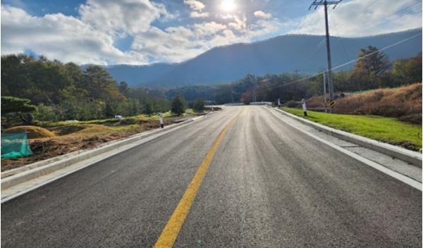 이번 사업은 총사업비 76억 8,600만 원(국비 76억 3,600만 원, 군비 5,000만 원)을 투입해 연장 2.21km, 폭 7~8m 규모의 도로를 조성한 것으로, 이달 중 공사를 마무리했다.