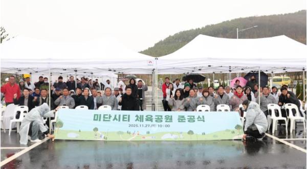 인천시 중구는 27일 오전 김정헌 중구청장, 구의원, 지역 자생단체장, 중구 파크골프협회·족구협회 등 지역 체육단체장, 지역 주민 등이 참석한 가운데 ‘미단시티 체육공원 준공식’을 개최했다.
