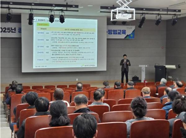 [한국제일신문, 윤진성기자] 광양시는 지난 25일 성황스포츠센터 세미나실에서 지역 내 의무관리대상 공동주택의 시설물안전관리책임자, 전기관리자, 경비책임자, 입주자대표회의 구성원 등 150여 명을 대상으로 ‘2025년 공동주택 소방안전·방범 및 입주자대표회의 구성원 교육’과 ‘전기안전사고 예방교육’을 실시했다고 밝혔다.