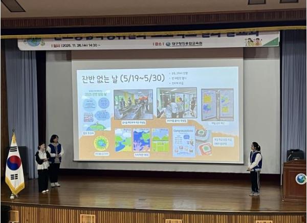 [한국제일신문, 김성옥기자] 대구창의융합교육원 산하 대구녹색학습원은 11월 26일 오후 2시 30분부터 창의융합교육원 시청각실에서 ‘탄탄대로 탄소중립 학생위원회 프로젝트 실천 발표회'를 성공적으로 개최했다.