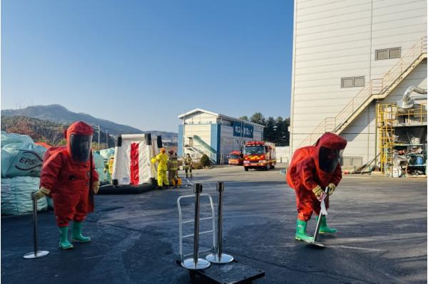 또한 훈련 종료 후 공장 시설 관계자들과 함께 공장 내부 구조를 확인하고 화재 진압 대원들을 대상으로 취급 중인 유해화학물질 특성과 취급 시 주의사항을 전달했다.