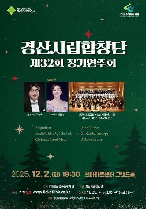[한국제일신문, 김성옥기자] 경산시립합창단이 오는 12월 2일 오후 7시 30분 영남대학교 천마아트센터 그랜드홀에서 2025년 마지막 정기연주회를 개최한다.
