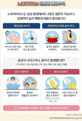 충북보건환경연구원 윤방한 미생물과장은 “바이러스성 식중독을 예방하기 위해서는 손 씻기 등 기본적인 개인위생 준수가 무엇보다 중요하다. 음식은 반드시 충분히 익혀 섭취하고, 물은 끓여 마시는 등 올바른 식생활 수칙을 실천해 달라”고 강조하며, “충북보건환경연구원 역시 적극행정을 통해 노로바이러스 예방과 확산 방지에 최선을 다하겠다”고 밝혔다.